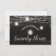 Oak Ridge Rustic Dark Brown Barn Wood, Sparkling Mason Jars, and Glowing String Lights Design with Twinkling strands of dangling lights and jars on a deep rich wood texture with white accents. With Modern Typography Script Fonts. A rustic elegant country farmhouse style design - Personalised Wedding Dinner Reception Guest Seating Table Number Place Card!