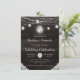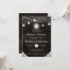Oak Ridge Rustic Dark Brown Barn Wood, Sparkling Mason Jars, and Glowing String Lights Design with Twinkling strands of dangling lights and jars on a deep rich wood texture with white Lace accents. With Modern Typography Script Fonts. A rustic elegant country farmhouse style design - Personalised Wedding Invitations!