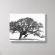 A dramatic black and white photograph of a beautiful spreading oak tree.