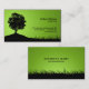 Customisable business card template featuring an oak tree silhouette and grass fields on green and black.