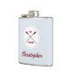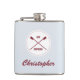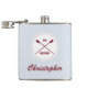 This smart hip flask is in a pale grey-blue colour and has crossed oars in maroon on a white background. The matching text is OAR INSPIRING, for a touch of humour. Personalise it by adding a name or initials to create a special gift for a rower. Perfect for those cold winter outings on the river.