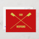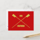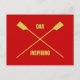Humourous postcard with a pun for a keen rower or sculler. "Oar inspiring", awe inspiring, crossed oars and text in a golden colour on a blood red background.