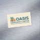 This high-quality magnet features the official branding for the Oasis Community Center. The design uses a limited, professional color palette with a minimalist palm tree icon and clear typography identifying it as a ministry of St. Paul Presbyterian Church (USA).