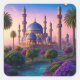 Variety of stickers of a middle eastern castle with minarets in a lush desert oasis, in the style of a thousand and one arabian nights. The image was made with Leonardo.ai.