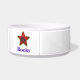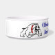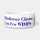 obedience classes are for Wimps bulldog customisable bowl. This funny red and white dog food or water bowl has the text 'Obedience Classes Are For Wimps' with a funny cartoon bull dog running around the bowl and a red and gold star with the anarchy symbol on the back. Perfect for all dog or pet lovers especially those with a naughty dog. Add your own pet's name for a fully customisable and personalised pet or dog gift.