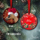 Hand painted portrait of this pretty oberhasli dairy goat in her Santa Hat - on a deep crimson red background with sparkling gold snowflakes. Goat Christmas ornaments for your Holiday gift giving, Christmas tree or window ornaments- customize the date on back