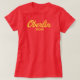 Show pride for your Obie with this Oberlin mum t-shirt, with yellow script on a red shirt.
