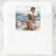 Original Painting of two girls playing with pink balloons on Coney Island Beach by New York City, Fine Art Artist, Gaye Elise Beda