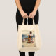 The printing came out very well, better than I had anticipated. The natural color fabric is sturdy with strong seams and comfortable handles. This tote fits easily over my shoulder. As it is filled, the bottom flattens out--very cool! I would buy this product again. This grocery tote holds a lot of groceries! The image quality was very good. The colors were a little darker than I had expected. The darkness may have been due to printing on a natural color fabric rather than on white. The cat design is attractively centered on the tote. The spirit of the design is very lively, just as it appears on the Zazzle website.