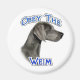 Your Weimaraner is the head of your household and the ultimate boss. Show the world your AKC Breed dog's power with this "Obey the Weimaraner on a t-shirt, mug, keychain, button, magnet and more.
