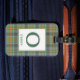 Luggage tag with the O'Brien clan tartan, a classic plaid pattern in green and saffron, with light blue, red, and bright yellow highlights. Personalise with your initial and name on a light coloured plate for easy legibility.