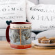 Mug featuring 3 of your own photos (funny cat pictures or other photos) framed by an orange peach striped design with a golden lining. You can also leave the photos as is if you like.