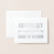 Silver foil funny bridesmaid proposal card "OBVIOUSLY YOU'RE GOING TO BE MY MAID OF HONOR (and no, that wasn't a question)."