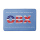 OBX in painted U.S.flag colours on a sky blue background. Outer Banks towns are listed in white.
