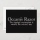 Occam's Razor is a scientific problem solving principle that simply means that the simplest explanation is usually the correct one. Among competing hypotheses, the one with the fewest assumptions should be selected. This would be a nice scientist gift for someone who likes the laws and rules of science.