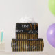 A memorable pattern made with their initial-letters repeated on a black and golden striped background