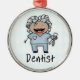 Cute cartoon woman dentist in blue medical scrubs with extracted tooth and hair bow. From Ornament Central.