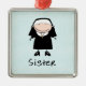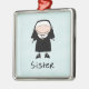 Professional woman in religious order with nun's habit on light blue background. Text on front reads Sister. From Ornament Central.