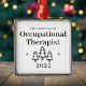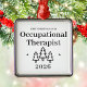 First Christmas as an occupational therapist ornament for a new job in health care or for a graduation. Elegant holiday decor in white with black lettering. Featuring Christmas trees and stars.