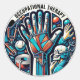 This sticker design, titled "Occupational Therapy Custom Text," beautifully represents the field of occupational therapy in a modern vector art style. It features a range of symbols synonymous with occupational therapy, including hands engaged in therapeutic activities and common tools like resistance bands. The design emphasizes the intricacies and significance of hand therapy, highlighted by an anatomically detailed hand illustration. The artwork is detailed and embodies a professional yet vibrant aesthetic, perfect for occupational therapists or those appreciative of the field. Set against a crisp white background with a bold black die-cut border, this sticker is visually appealing and conveys the importance of hands-on healing and rehabilitation. Choose the size from the options menu.