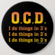 OCD I Do Things in 3's / threes. Obsessive Compulsion Disorder funny saying / quote.