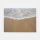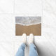 Doormat with image of beach sand and white foamed water flowing over it.