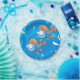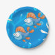 A graphic aquatic illustration of cute fish on paper plates. ©2014charmainepaulson