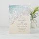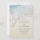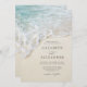 This unique classic elegant summer beach wedding invitation features a close-up photo of a beach shoreline with an ocean wave and seafoam, and elegant classic typography, perfect for destination weddings.
