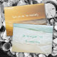 Ocean scene custom thank you flat cards. Created with wording for hospitality thank you, but this design works for any message. A golden sunrise over the ocean beach is the image on the front. The beach is the background for a message and signature on the back.