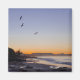 Ocean Beach Sunset magnet featuring an original photograph taken by AB in Byron Bay, Australia. The photo shows birds flying into the sunset and a beautiful surf beach landscape in pastel shades of blue, pink and orange. Check the other products in this collection for a great matching look!
