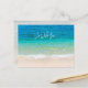 Christmas postcards with ocean and beach scene. Customise with your greeting and signature. Tropical blue water and beach sand on the front with sample text, "we wish you" (change wording to "I" as needed). The wording continues onto the back with a "Merry Christmas" and "Happy New Year" greeting.
