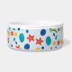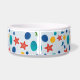 Colourful cute pet bowl with starfish, shells and pebbles, sea weed for summer. Dive into the soothing rhythm of the waves with our Uplifting Ocean Beach Pattern.