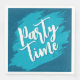 Ocean blue napkins with an abstract brush stroke in a pretty azure colour. Over the brush stroke are the words "Party Time" in a white script that has a blue drop shadow. Simple but perfect for any celebration table.