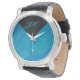 Colours Galore Ocean Blue and Black Accent Monogram Shoppe Vintage Leather Strap watch features a burst of brilliant blue colour with a black triangle accent containing your initials (don't forget to customise). Our colours are filled with swirls and our signature texture created by our talented artist, Traci Van Wagoner, in a graphic dry-brush style. If blue is your favourite colour, then you'll love our Ocean Blue personalised gifts and accessories.