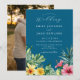 Ocean Blue Elegant Tropical Floral Photo Wedding Invitation