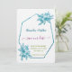 Announce your upcoming beach wedding in style with these ocean-inspired Save the Date cards. Featuring vibrant blue floral artwork and a modern geometric frame, these cards set the perfect tone for your coastal celebration. Fully customisable text and a photo option on the back make them uniquely yours.
