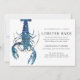 A set of lobster boil birthday invitations for your next seafood related barbecue or party. These invitations feature simple charcoal black text, along with a unique watercolor style blue lobster illustration centred towards the side. On the reverse side of the invitation is a striped deep Ocean Blue colour. All elements of this invitation are adjustable by using the customise function.