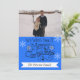 Black text that reads "We Wish You A Merry Christmas" on front and "and a Happy New Year!" on back with an ocean blue background, white snowflakes and a silhouette deer, and areas you can add your family name and photo on a Christmas holiday greeting card you're sure to want to send family and friends!