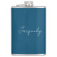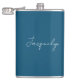 Ocean Blue Plain Elegant Modern Minimalist Name Hip Flask