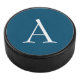 Ocean Blue Plain Elegant Modern Monogram Initial Hockey Puck