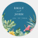 Ocean Blue Tropical Flowers Wedding Favour Classic Round Sticker