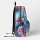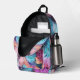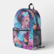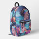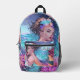Watercolor mermaid in the sea backpack. This watercolor design has lots of blue and pink. The background has ocean waves and a colourful sky. The mermaid is wearing her hair up with a headband of flowers. Dive into style with our mermaid backpack! Carry your essentials effortlessly while embracing your inner sea creature. Perfect for mermaid lovers!