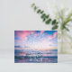 A customisable postcard featuring a hand-drawn boho mandela over a vibrant blue and pink photograph of the ocean at sunset, taken from Kihei on the island of Maui, Hawaii.