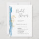 Ocean themed bridal shower card invitation design feature a seahorse and a watercolour blue ocean water brush effect on the edge.