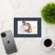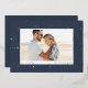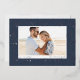 Chic coastal style holiday card adds nautical flair to your Christmas greetings. Perfect for sharing a vacation photo, or for families who live in coastal, tropical, warm weather or island locales, this elegant design features your favourite horizontal or landscape orientated photo with a border of ocean coral in luxe silver foil. Add your custom holiday message (shown with "seas and greetings"), family signature and the year.