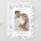 Chic coastal style holiday card adds nautical flair to your Christmas greetings. Perfect for sharing a vacation photo, or for families who live in coastal, tropical, warm weather or island locales, this elegant design features your favourite vertical photo with a border of ocean coral in shades of navy and dusty blue. Add your custom holiday message (shown with "seas and greetings"), family signature and the year.