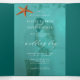 Modern elegant minimalist typography teal turquoise underwater all in one trifold budget summer seaside beach or cruise destination wedding invitation template with 2 photos, scanning QR codes to website for online rsvp and details featuring a chic trendy white calligraphy script, a starfish, and ocean green transparent photo overlay. ++++++++++++ Easy to personalise with one or two custom photos (you can upload the same photo on both sides) and your guest information! The invitation is suitable for romantic by the sea, island resort, or ocean stylish weddings.