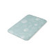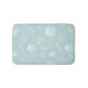 This bath mat features a repeating pattern of white hand-drawn sea shells, starfish, sand dollars and seaweed over a light green background. Perfect accent for a seaside retreat.