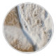 Ceramic knob with an image of ocean foam as the wave washes on to the beach as viewed from above.
