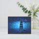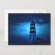 An avocative image with nautical and seascape theme. A lighthouse a stormy night with dark clouds and rain. A light can be seen in the lighthouse tower. A dark blue image covered with drops, raindrops or ocean spray